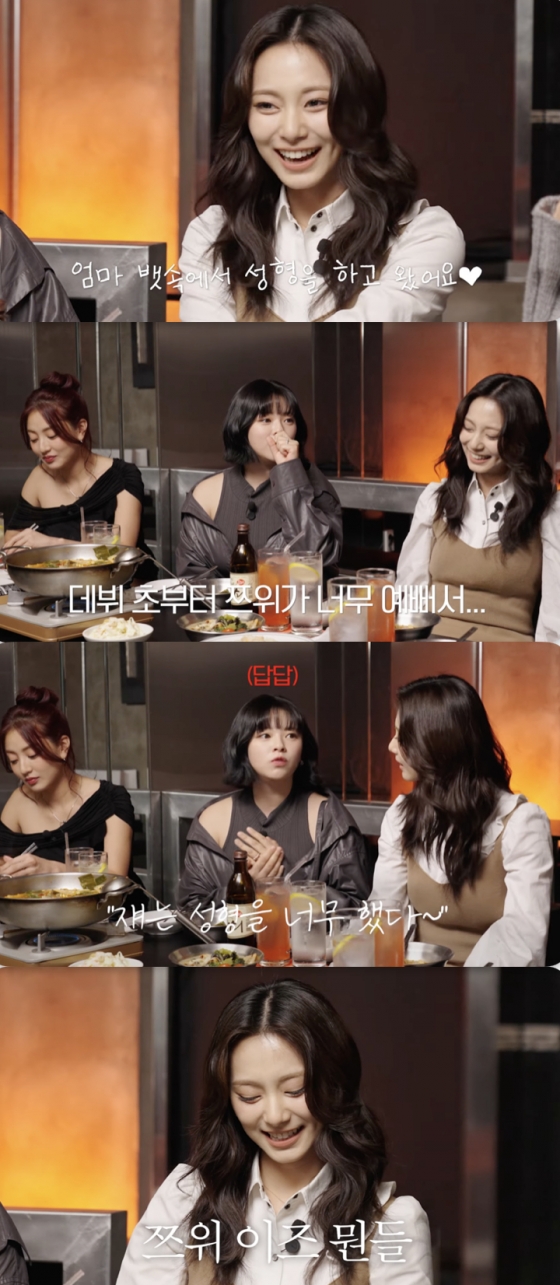 한편 정연은 "헤메코(헤어, 메이크업, 코디)가 진짜 너무 예뻤다"라며 쯔위의 솔로 활동 당시 미모를 언급했다. 그러면서 "옛날부터 좀 억울했다. 데뷔 초반부터 쯔위가 너무 예쁘니까 사람들이 '쟤는 성형을 너무 많이 했다'라고 했다"라며 데뷔 초부터 이어진 쯔위의 성형설을 일축했다.