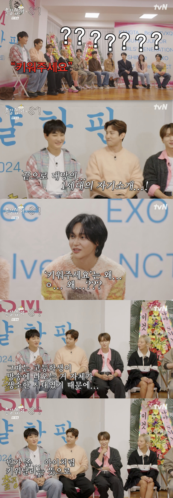 이날 1세대 아이돌 강타는 H.O.T 시절의 그룹 구호를 떠올리며 "키워주세요!"라고 인사했다. 요즘 아이돌과 전혀 다른 형식의 인사 구호에 후배 그룹들이 웅성웅성 대며 놀란 모습을 보이자 나영석PD는 라이즈 원빈에게 "이런 구호를 들어본 적 있냐"라고 물었다 .