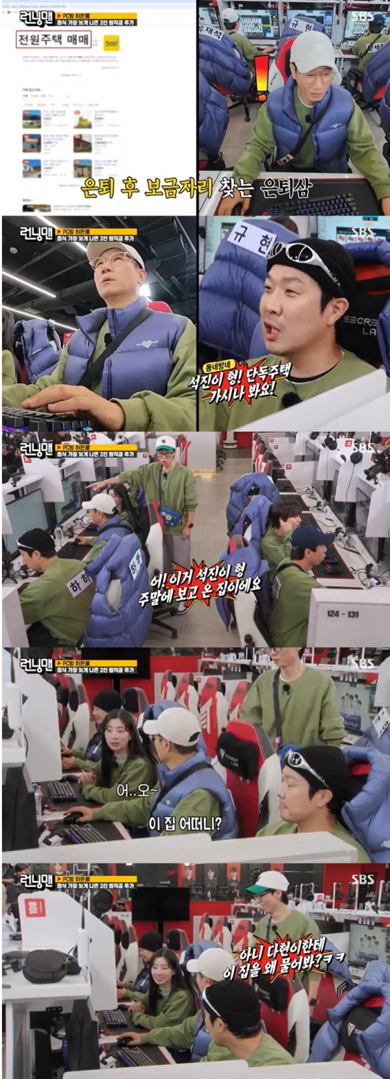 이 가운데 지석진은 부동산 시세를 검색했다. '단독주택 매매'를 검색하는 지석진을 발견한 유재석은 "어. 석진이 형 부동산 본다"라고 소리쳤다.