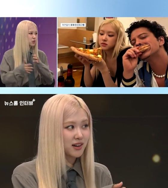 로제는 브루노 마스와 입을 맞춘 소감도 전했다. 그는 "처음엔 그냥 너무 신기하고 그랬는데 정말 많이 도와주시고 영감도 정말 많이 주셨다. 내가 처음 앨범 내는 데 있어서도 되게 많은 조언도 해주고 좋은 동료도 돼 주셨다"며 "내가 오늘 뉴스 나온다고 말도 했는데, 가서 '브루노 마스 짱'이라고 꼭 얘기하고 와달라고 그랬다"고 전했다.