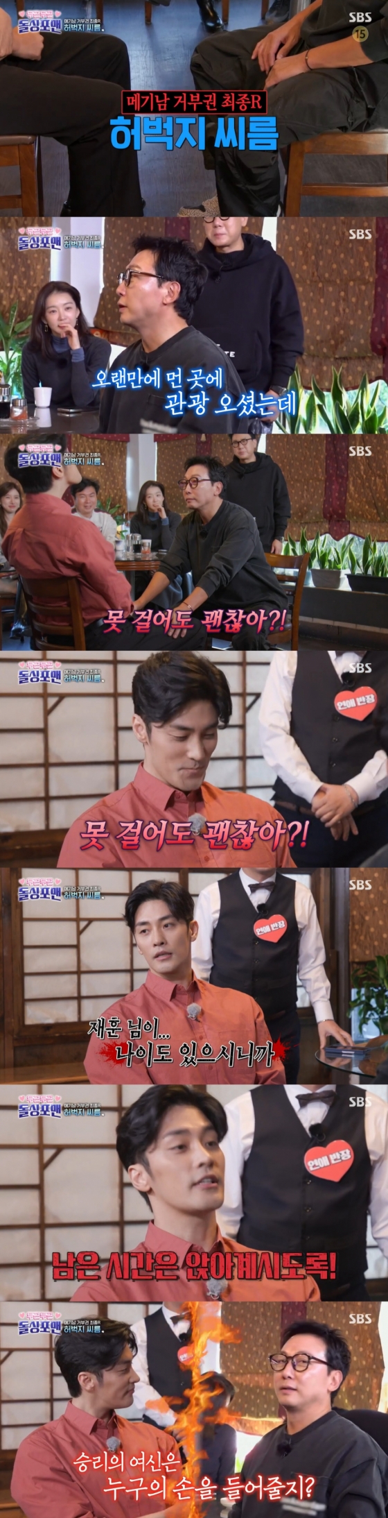 탁재훈과 성훈의 날카로운 대결은 계속 됐다. 김준호가 '메기남 거부권'을 제안한 것. '돌싱포맨' 멤버들은 팔 씨름, 허벅지 씨름, 레몬 빨리 먹기 중 하나라도 성훈을 이긴다면 메기남을 한국으로 돌려보낼 수 있게 됐다.