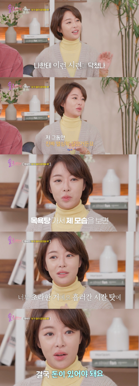 3일 SBS플러스, E채널 예능 프로그램 '솔로라서'에서는 황정음, 명세빈, 채림이 이혼 후 느낀 경제적 어려움에 대해 고백하는 모습이 그려졌다.
