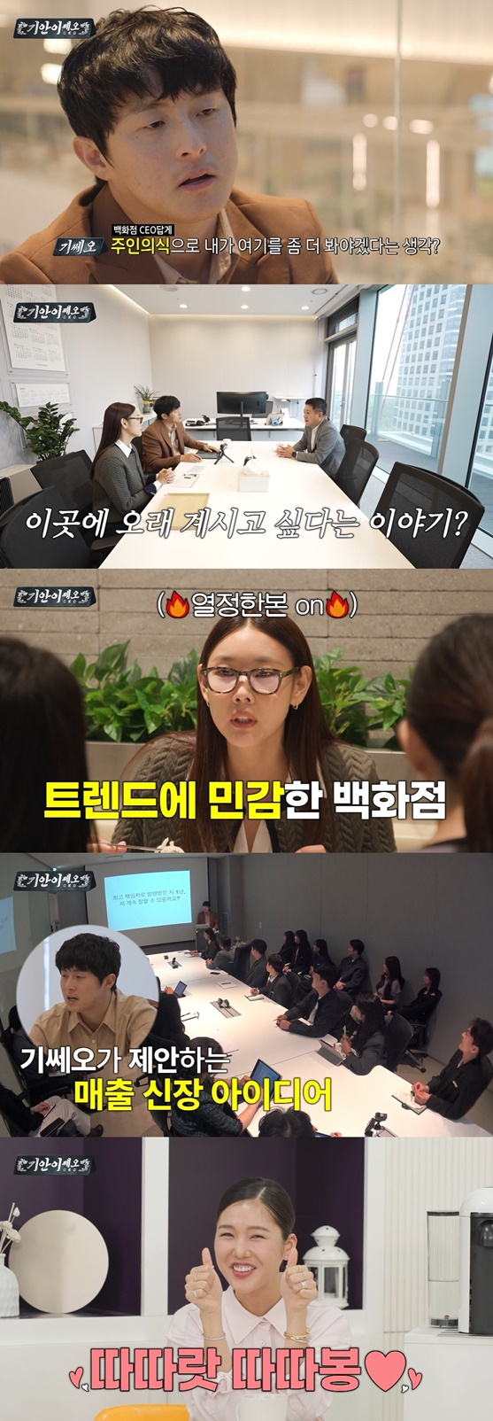 놀라웠던 것은 '기쎄오'의 그림 솔루션이었다. 매출 신장을 위해 가져온 번뜩이는 아이디어는 좌중을 압도했다. 그중에서도 최근 트렌드인 연애 프로그램에서 아이디어를 얻은, 백화점에서 젊은 남녀의 만남을 주선하는 크리스마스 이벤트는 화룡점정을 찍었다. 백화점에서 단순한 데이트만 하는 것이 아닌, 인생의 일부분을 설계할 수 있도록 구성한 아이디어가 돋보였던 것이다.