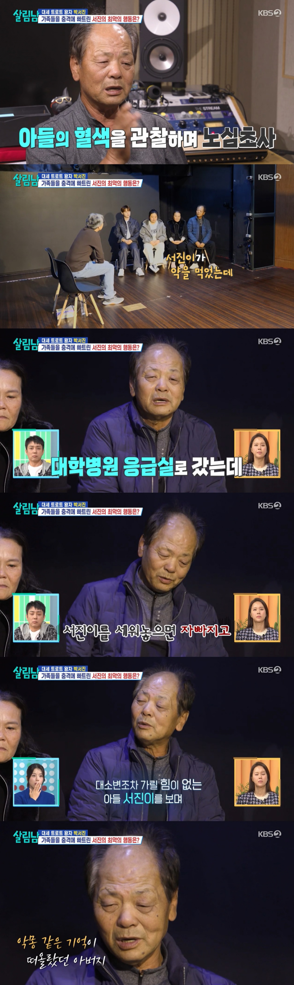 실제로 박서진은 의식을 잃은 채 응급실에 갔었다고. 박서진 아버지는 "집에 있는데 전화가 왔다. '서진이가 약을 먹었는데 병원으로 빨리 가보라'고 해서 대학 병원 응급실에 갔는데 세워놓으면 자빠지고. 애가 힘이 없었다"라고 이야기했다.