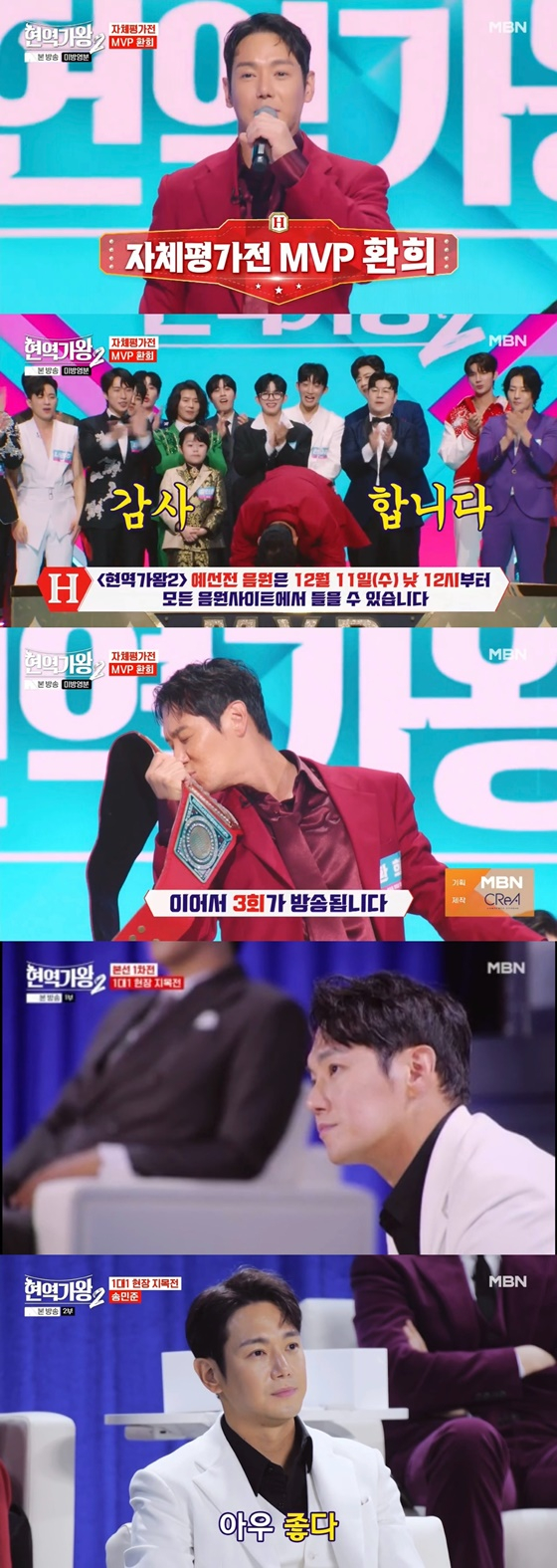 지난 10일 방송된 MBN 오디션 프로그램 '현역가왕2'에서는 첫 번째로 치러진 자체 평가전의 MVP와 방출자가 공개된 가운데, MVP의 명예는 트로트의 황태자로 등극한 환희가 가져갔다.