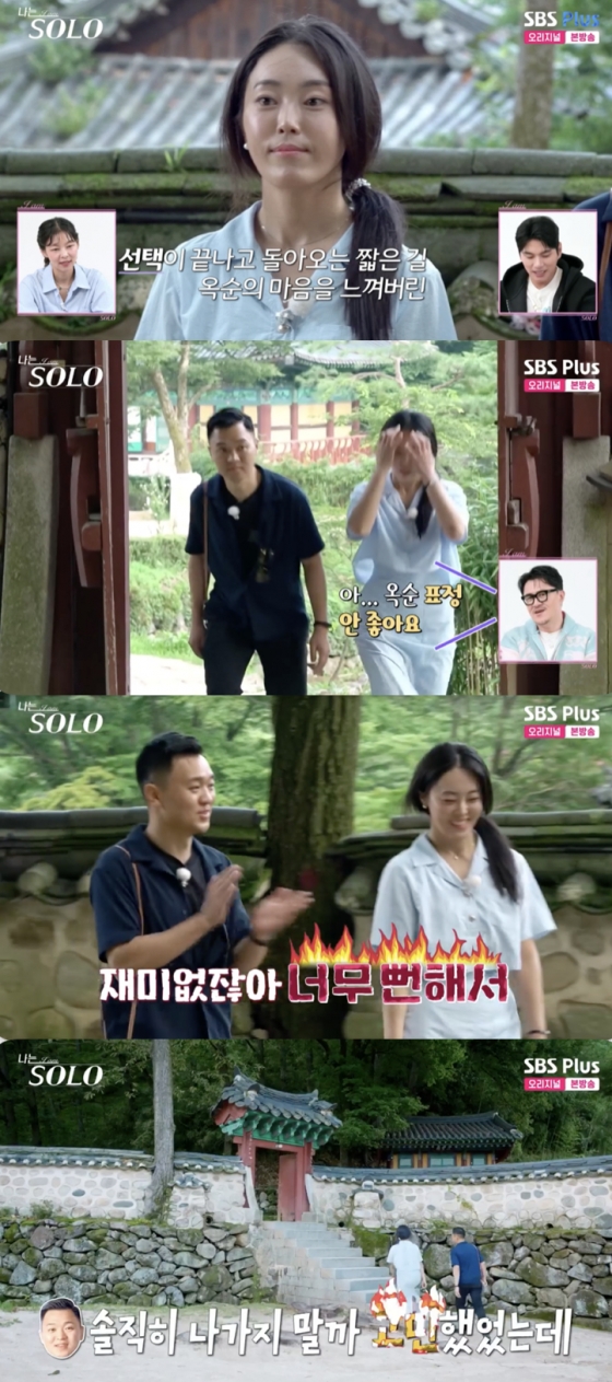 이어진 광수의 인터뷰 장소에서 광수는 "(옥순이) 시큰둥해 보였다. 그리고 으레 같이 가면 말을 하는데 말도 안 하고 싶어 하는 것 같아서 옥순 님이 내가 따라간 거에 대해서 기분이 좋지 않은가 (싶었다). 괜히 따라왔나 싶었다"라며 자신 역시 옥순의 마음을 느꼈다고 밝히며 다소 의기소침해진 모습을 보였다.