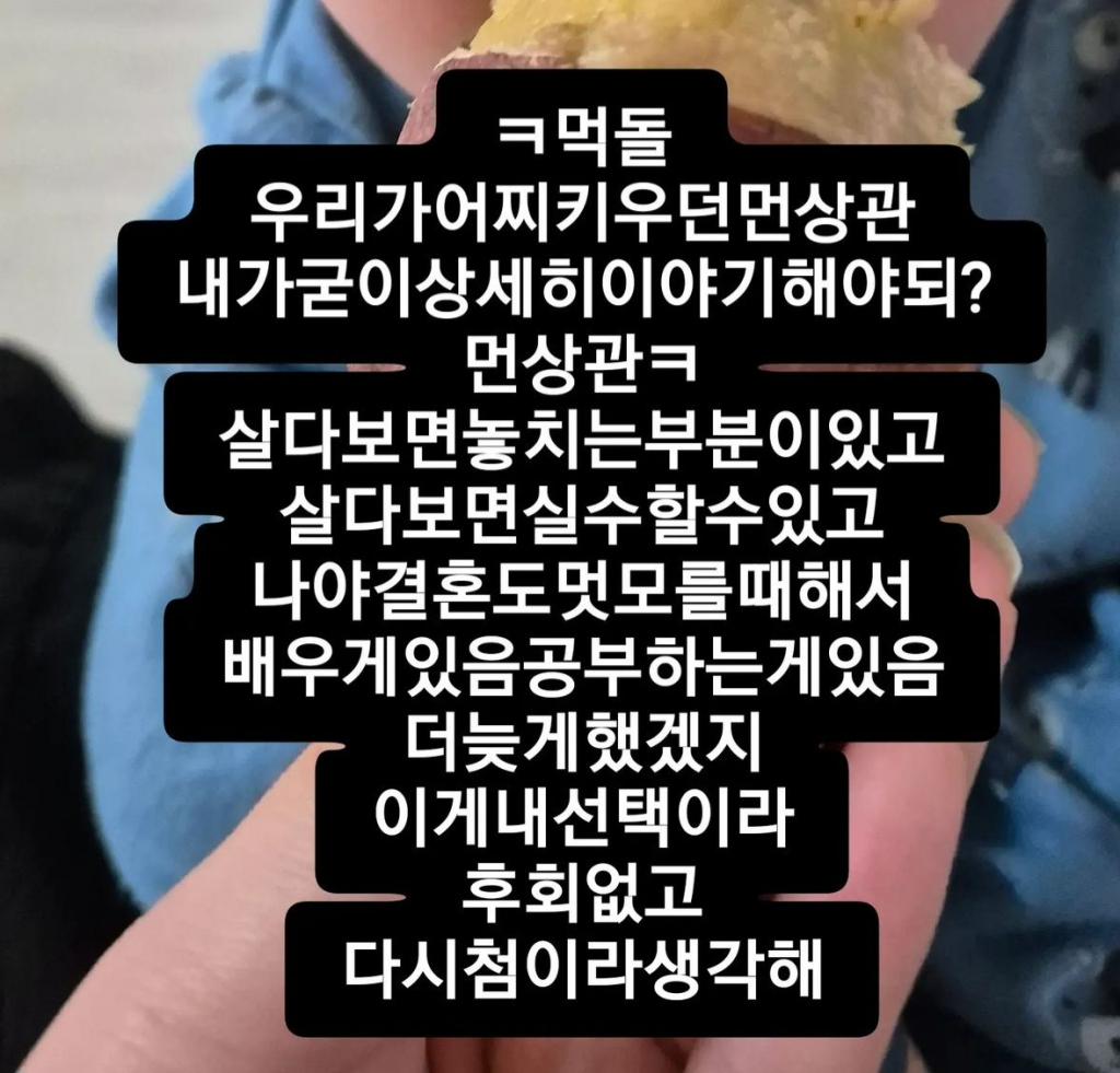 또 그는 남편의 사진에 "사랑해 은석 씨. 인스타 잘 안 하는 남편. 나의 자유시간. 요새는 안 싸운다. 안 싸운 지 오래 된 듯. 그만큼 이제 서로가 지치고 알아가기까지는 힘든 과정. 지금도 그렇지만 인생은 숙제 같다. 살도 빠지고 난 찌고. 힘든 일 겪고 나니 웃을 날이 곧 오겠지. 나밖에 모르는 남자. 내 그대로 사랑해주는 사람"이라고도 적었다.
