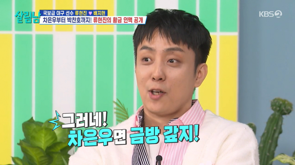한편 류현진은 자선 행사에 앞서 불러야 하는 연예인으로 차은우를 언급했다. 이에 제작진은 '100억 빚진 차은우, 100억 보유 박서진'을 제시했다. 그러자 백지영은 "이건 당연히 서진이다. 서진이도 잘생겼다"라고 이야기했다.