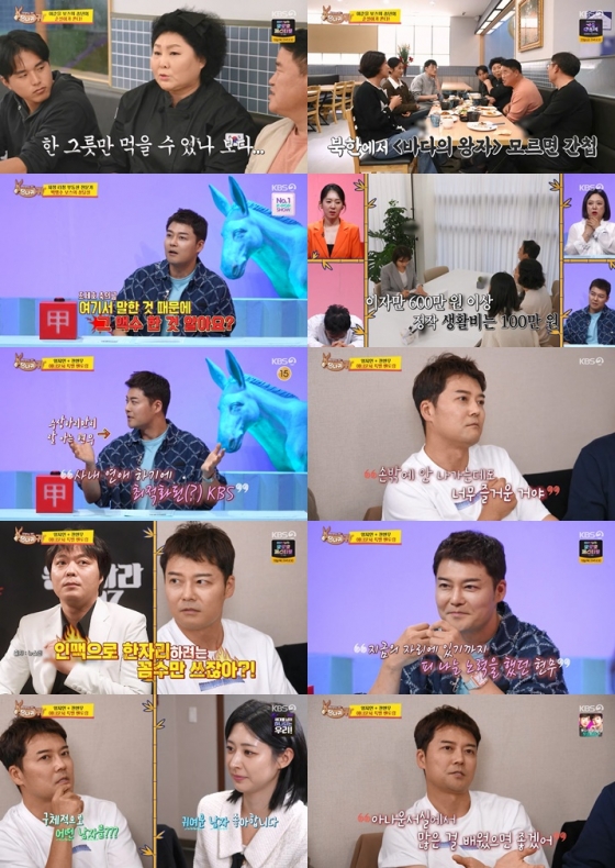 박명수는 후배 개그맨 김경진에게 부동산에서 이혼까지 상담 풀코스를 선사했다. 특히 '결혼 5년 차' 김경진-전수민 부부가 총자산 23억 원에도 생활고를 호소해 눈길을 끌었다. 이유인즉슨, 김경진 명의로 된 집 3채와 아내 명의로 된 빌라 1채가 있지만, 김경진은 "이자로 600만 원 이상 나간다"라며 대출 이자가 생활비의 6.5배인 점을 밝혀 모두가 깜짝 놀랐다. 여기에 김경진은 사업 실패 이야기와 함께 "개그맨 동기 중 힘든 친구들이 있어서 7천만 원을 대출받아 도와줬다"라고 말했고, 이에 변호사는 "정말 심각한 유책 사유"라며 대신 분노했다. 이 과정에서 전현무는 "나 여기서 한 말 때문에 조세호 결혼식 축의금을 220만 원이나 냈다. 나 원래 200만 원씩 안 한다"라며 거액을 내는 상황이 오도록 바람잡이를 했던 박명수를 원망했다. 박명수는 전현무 결혼식에 얼마 낼 거냐는 질문에 "물가 상승률을 반영해 110만 원 내겠다. 대신 일 하나 꽂아주면 200만 원, 두 개 꽂아주면 300만 원 내겠다"라고 말했고 이에 솔깃해진 전현무가 "딜"을 외쳐 웃음을 자아냈다.