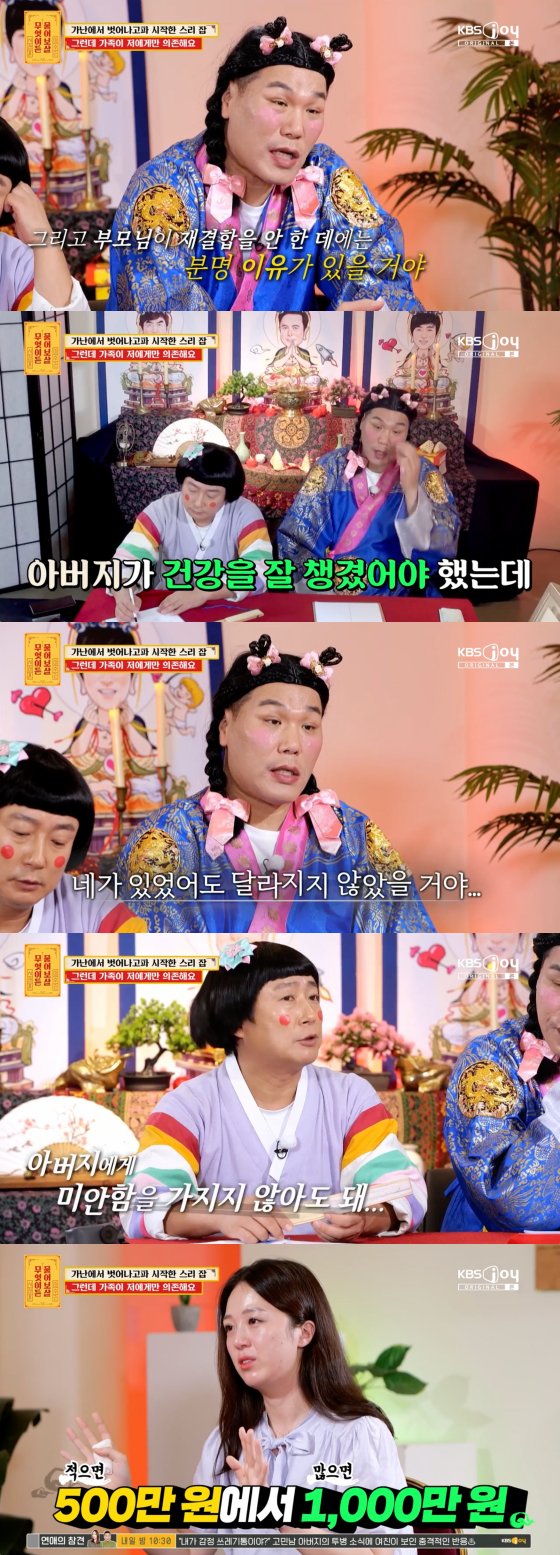 이에 MC 이수근 역시 "아버지가 돌아가신 건 안타깝지만 너는 가족들을 위해 정말 열심히 살았다. 아버지 죽음에 대한 죄책감까지 갖지 않아도 된다"고 단호하게 조언했다.