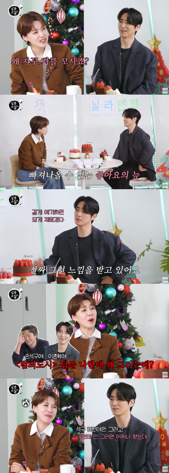 이준혁은 이마저도 "(손)석구 형한테만 그러고 나한테는 안 그러면 어쩌나 걱정했다"며 장난스럽게 손석구를 질투해 다시 한번 장도연을 설레게 했다.
