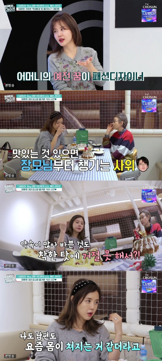 18일 방송된 TV CHOSUN '퍼펙트 라이프'에는 방송인 이하정이 출연해 일상을 공개했다. 이날 이하정은 올해 6kg 감량에 성공했다며 49.9kg 체중 인증샷까지 공개해 눈길을 끌었다.