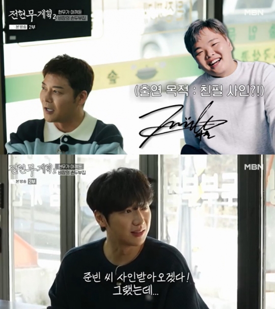 이날 전현무는 두 번째 '먹친구'로 배우 이상엽을 만났고, 두 사람은 경기도 파주의 원조 손두부집을 찾아갔다. 이상엽은 식당에 앉자마자 "잠깐만, 준빈 씨는... (왜 없냐?)"라고 놀라며 물었고, 전현무는 "그렇게 됐어"라며 한숨을 쉬며 연기했다.
