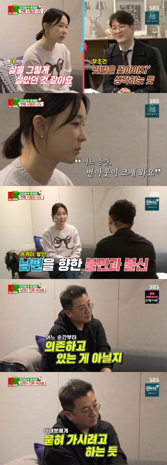23일 방송된 SBS 예능 프로그램 '동상이몽 2 - 너는 내 운명'에서는 결혼 8년 차 이지혜, 문재완 부부가 부부 상담을 받는 모습이 그려졌다.