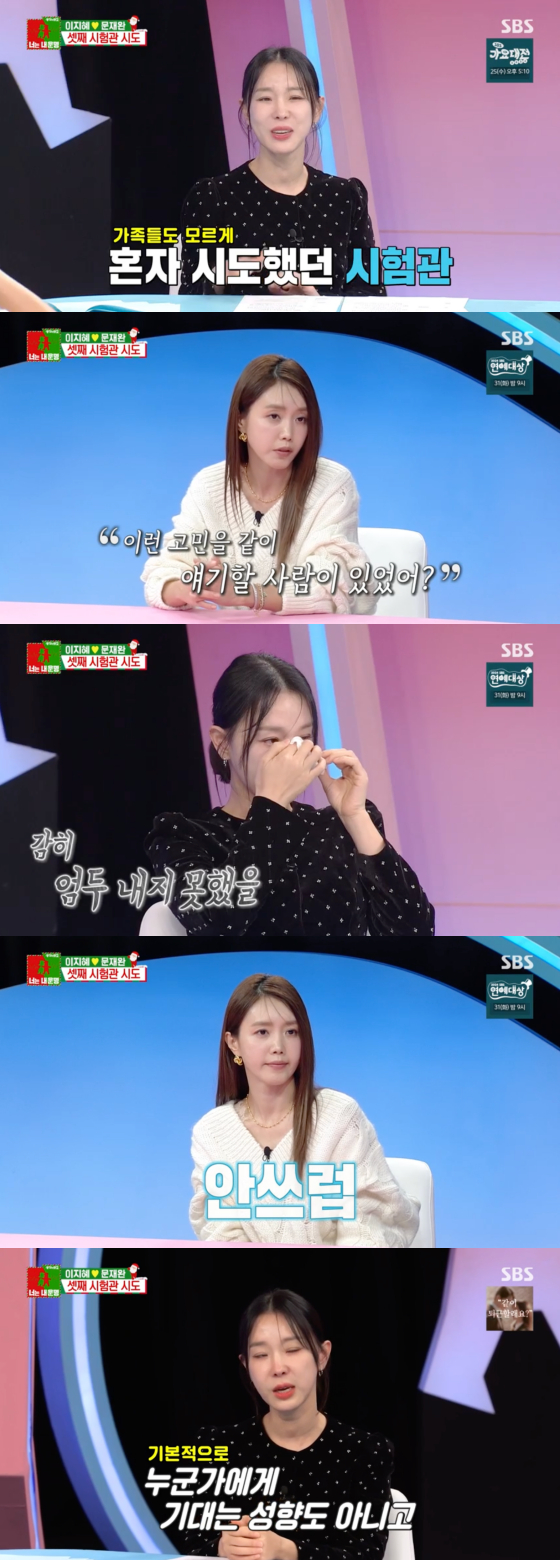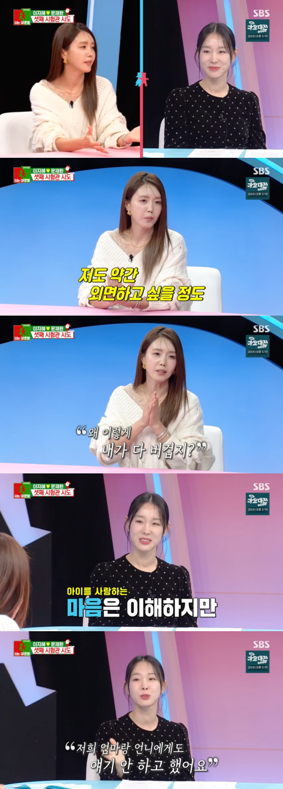 마음을 추스른 이지혜는 "기본적으로 누군가에게 기대는 성향도 아니고, 친구들에게 털어놓고 싶어도 그럴 여유조차 없었다. 30분 시간 내는 것도 쉽지 않다"고 힘든 속내를 토로했다.