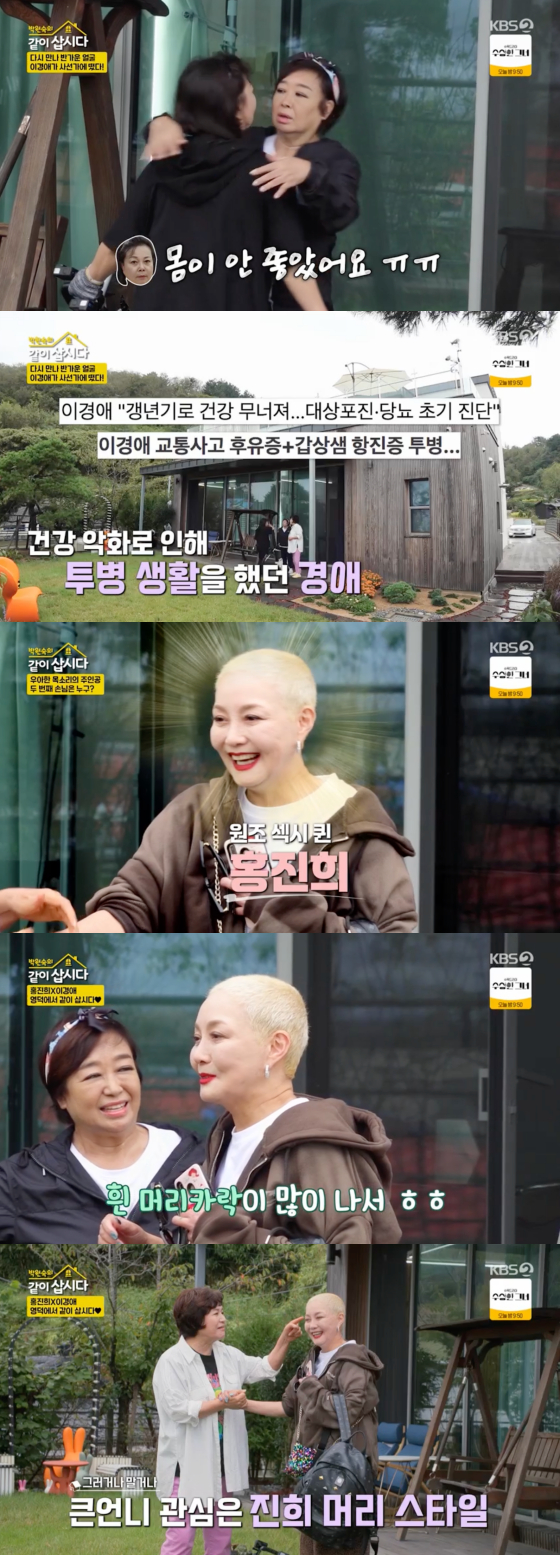 26일 방송된 KBS 2TV 예능 프로그램 '박원숙의 같이 삽시다' 시즌 3에는 건강 악화를 딛고 돌아온 이경애와 배우 홍진희가 출연했다.