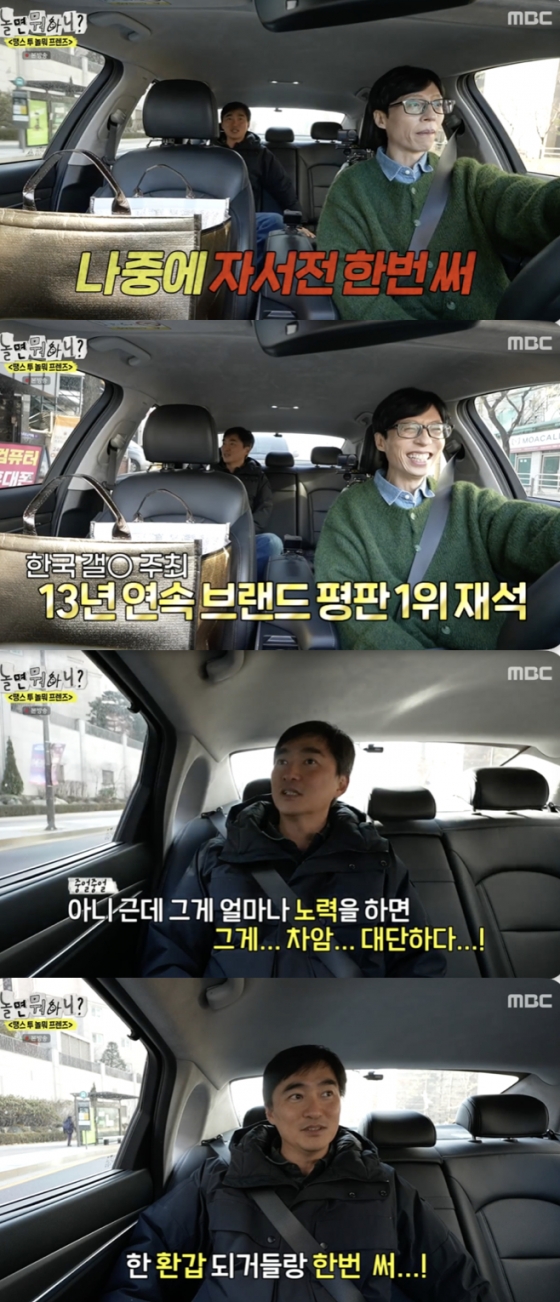 그러면서 "나중에 자서전 한 번 써라. 환갑 되거들랑 한번 써"라며 자서전 집필을 권유해 유재석을 당황케 했다.