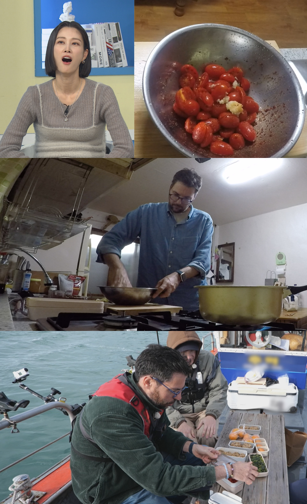 간단하지만 속 든든한 주먹밥부터, 파브리가 손으로 팍팍 무친 나물 반찬까지 선상 위에 정성 가득 도시락 한 상이 차려진다. 그중에는 MC들에게 신선한 충격을 안겨준 수상한 음식도 있어 이목을 집중시킨다. 해당 음식의 레시피 영상을 보던 MC 이현이는 재료가 하나씩 추가될 때마다 뒤집어 질 듯 놀라고. 음식계를 평정한 먹신 김준현도 "와 이건 상상이 안 가는데요?"라며 도무지 감을 잡지 못했다는데. 파브리가 토마토에 참치액젓, 마늘, 고춧가루까지 넣어 만든 요리의 정체를 두고 모두의 의견이 분분했다는 후문.