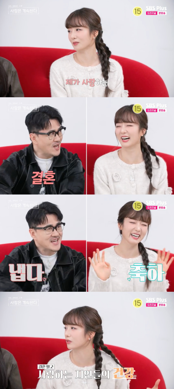 2일 방송된 ENA, SBS플러스 예능 프로그램 '나는 솔로, 그 후 사랑은 계속된다'에서는 새해 소망을 언급하는 윤보미의 모습이 그려졌다.