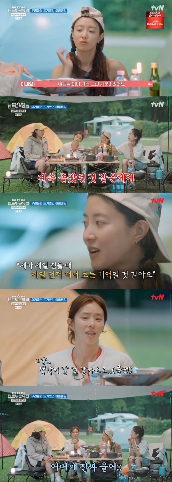 지난 2일 방송된 tvN 예능 프로그램 '텐트 밖은 유럽' 마지막 회에서는 라미란, 곽선영, 이주빈, 이세영이 마지막 만찬을 즐기는 모습이 그려졌다.