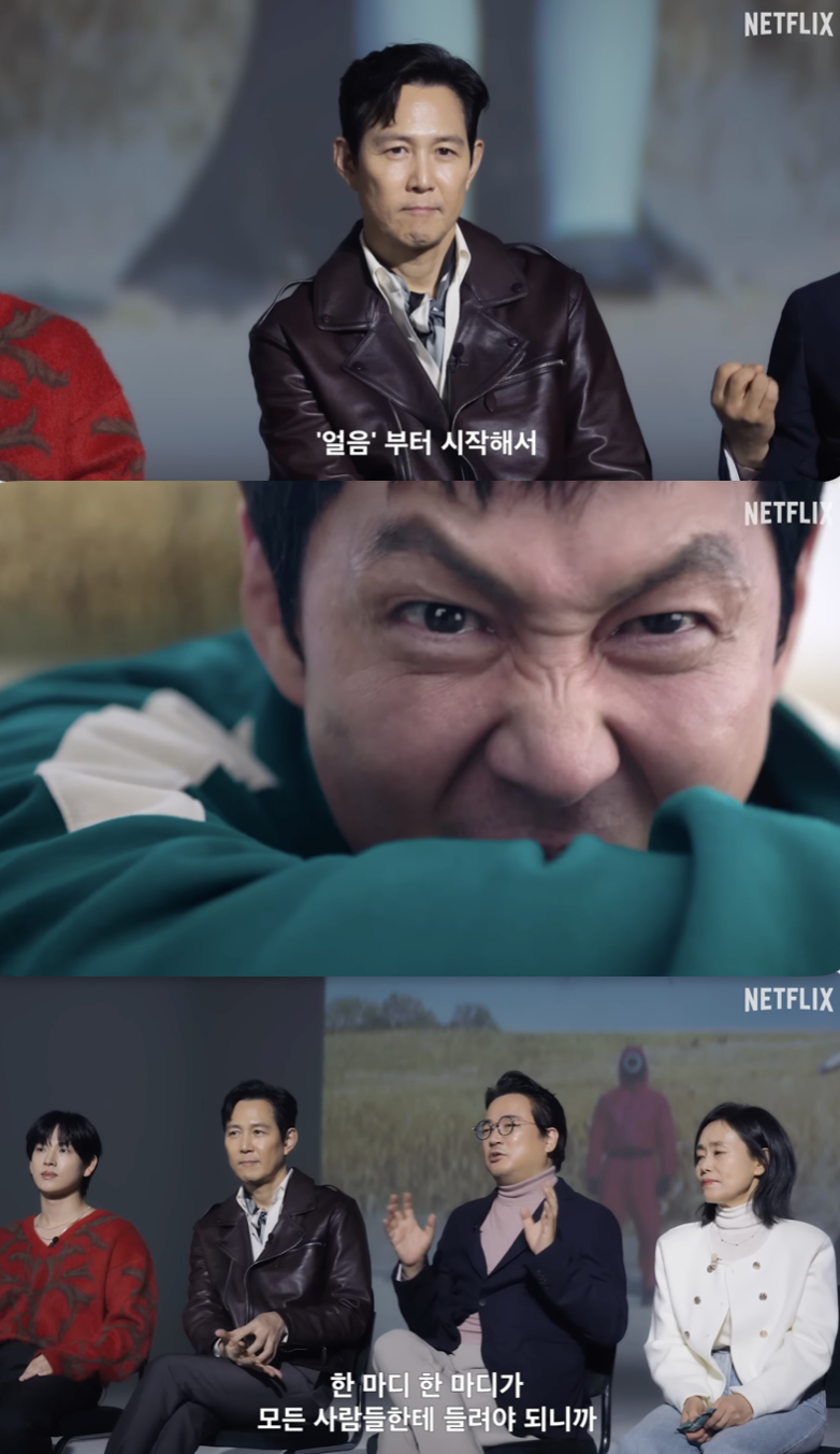 영상 속에는 이정재, 임시완, 조유리, 양동근, 박규리, 강애심, 이서환이 출연해 자신들이 연기한 '오징어 게임2' 장면을 보고 비하인드를 설명했다.