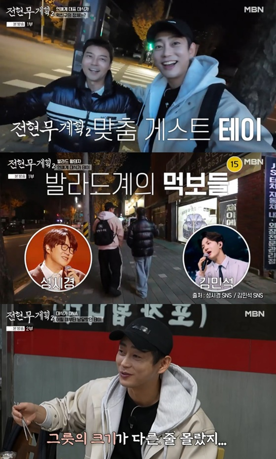 3일 오후 방송된 MBN 예능 '전현무계획2'에는 가수 조정민에 이어 테이가 먹친구로 출연했다.