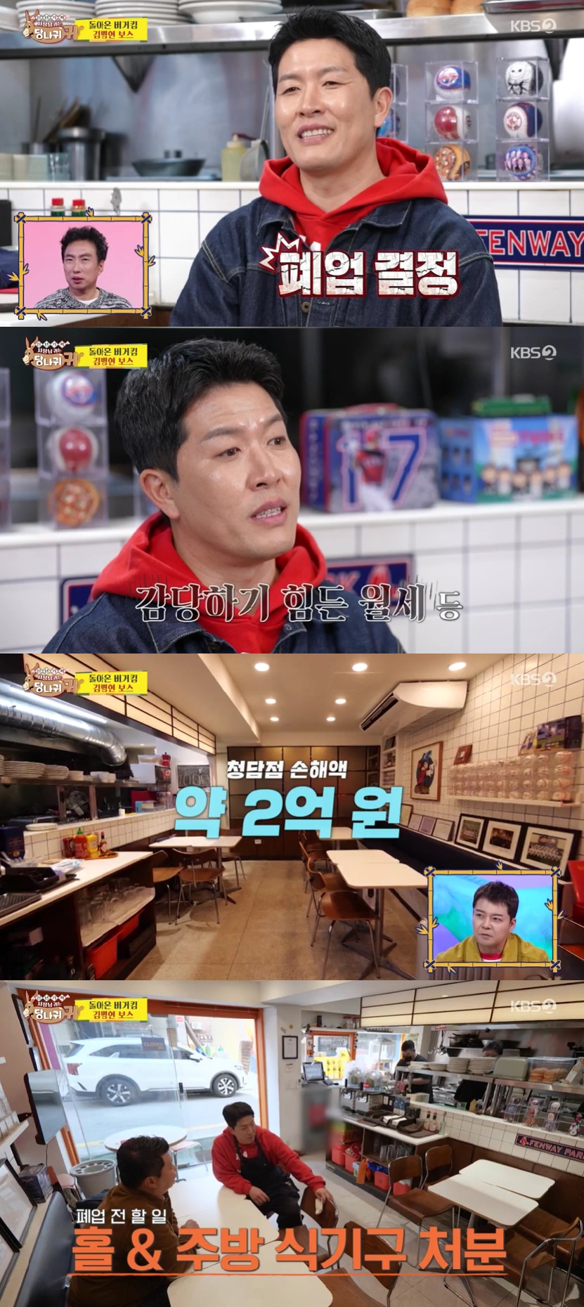 그러면서 "매출이 좋았을 때는 하루 매출이 200만 원이었는데 요즘 100만 원 이하로 내려갔다. 요즘은 코로나19 때보다 더 힘들다. 3년에 2억 정도 손해가 발생했다. 그동안 적자는 방송과 사비로 메꿨다. 아내가 다시는 (장사) 하지 말라고 한다. 나도 (요식업으로) 성공하고 싶다"고 말했다.