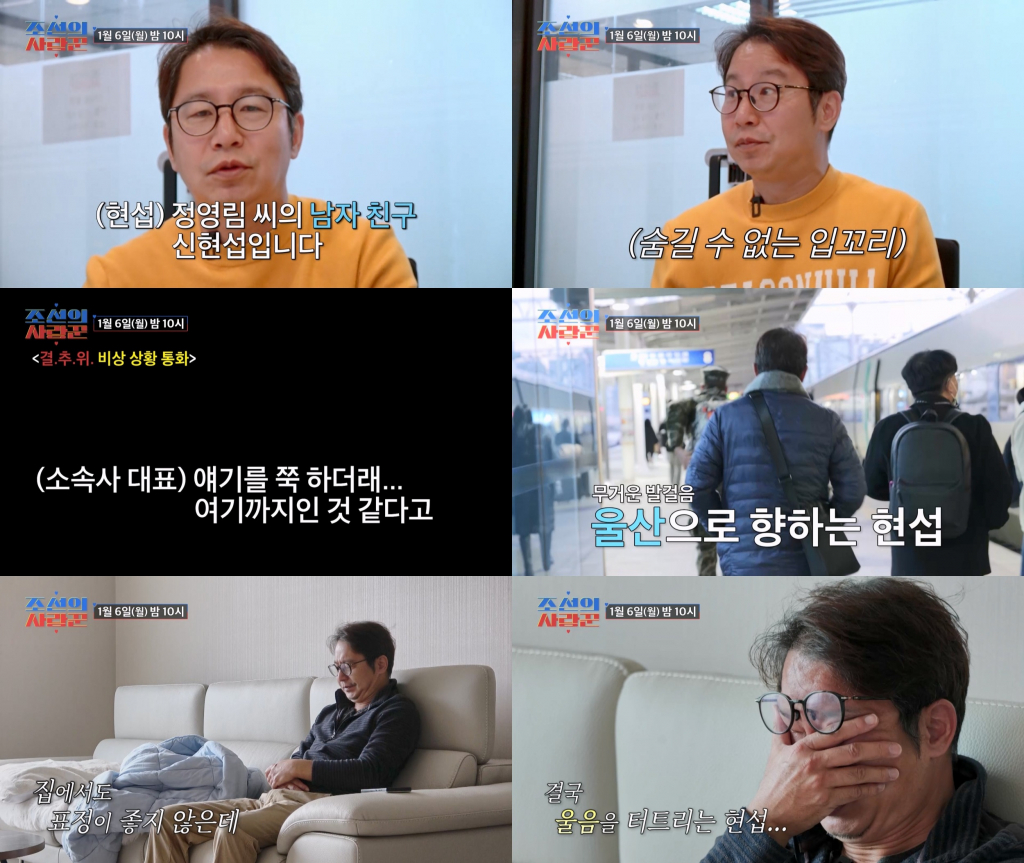 얼마 전까지만 해도 사랑이 넘치던 심현섭과 '울산 그녀' 사이의 이별 위기는 1월 6일 오후 10시 방송되는 TV CHOSUN '조선의 사랑꾼'에서 확인할 수 있다.