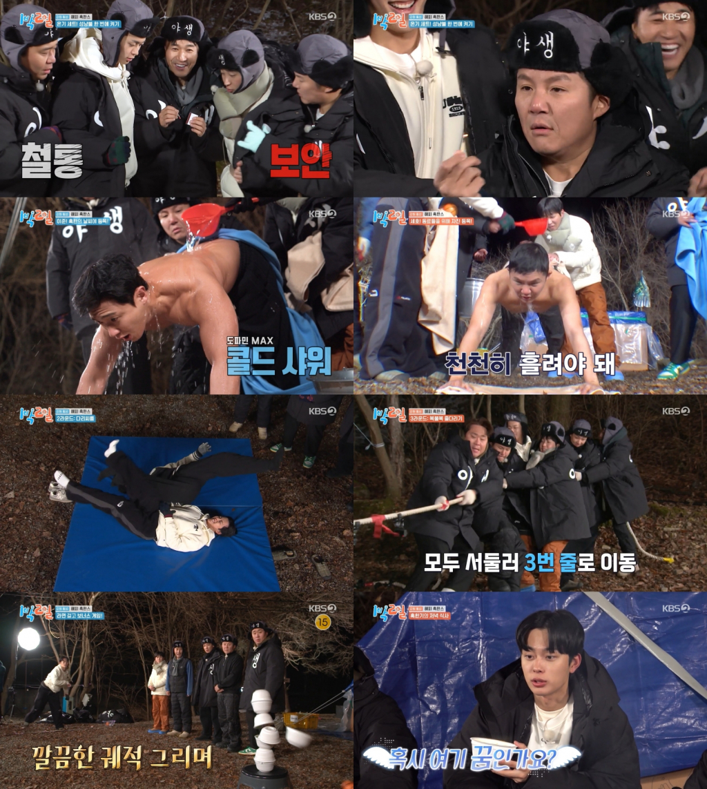 이날 방송에서는 3년 만에 돌아온 혹한기 대비 캠프에 본격 입소한 여섯 멤버(김종민 문세윤 딘딘 조세호 이준 유선호)의 이야기가 그려졌다.