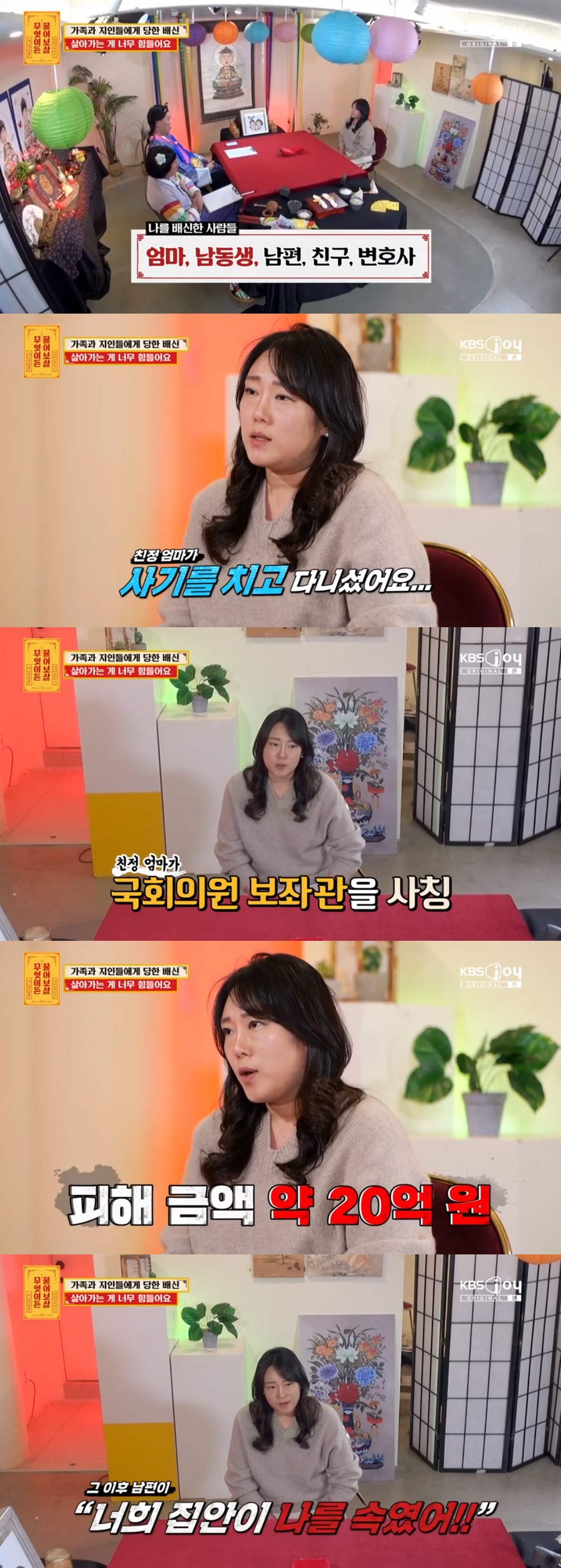친모, 남동생, 남편, 지인, 변호사에게 배신을 당한 사연자가 안타까운 사연을 고백했다.