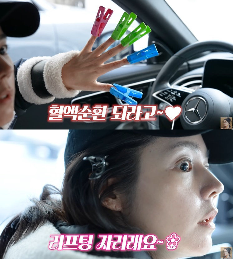 한가인은 안 아프냔 질문에 "안 아프다"라며 모든 손가락 끝에 빨래집게를 꽂았다. 그는 "이건 비밀인데 여기까지 꽂는다. 리프팅 자리라고 한다. 이거 꽂고 운전한다"라며 빨래집게를 귀 위 두피살에 꽂아 모두를 놀라게 했다.
