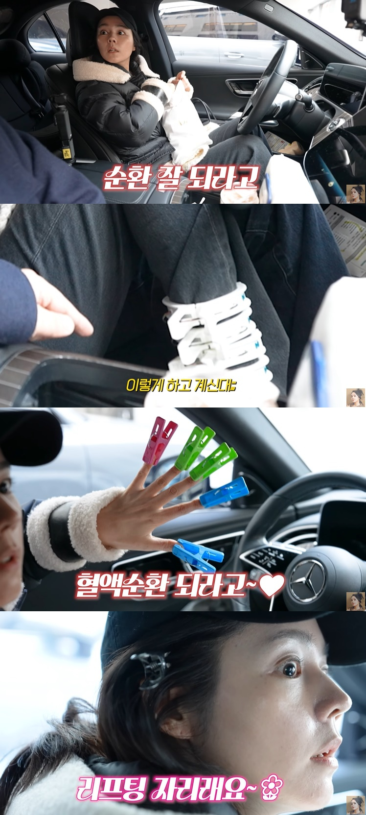 이 가운데 그는 에르메스 파우치에서 빨래집게를 꺼내 눈길을 끌었다. 한가인은 발목부터 무릎까지 빨래집게를 집는다며 "순환 잘 되라고. 집에서도 한다"고 밝혔다.