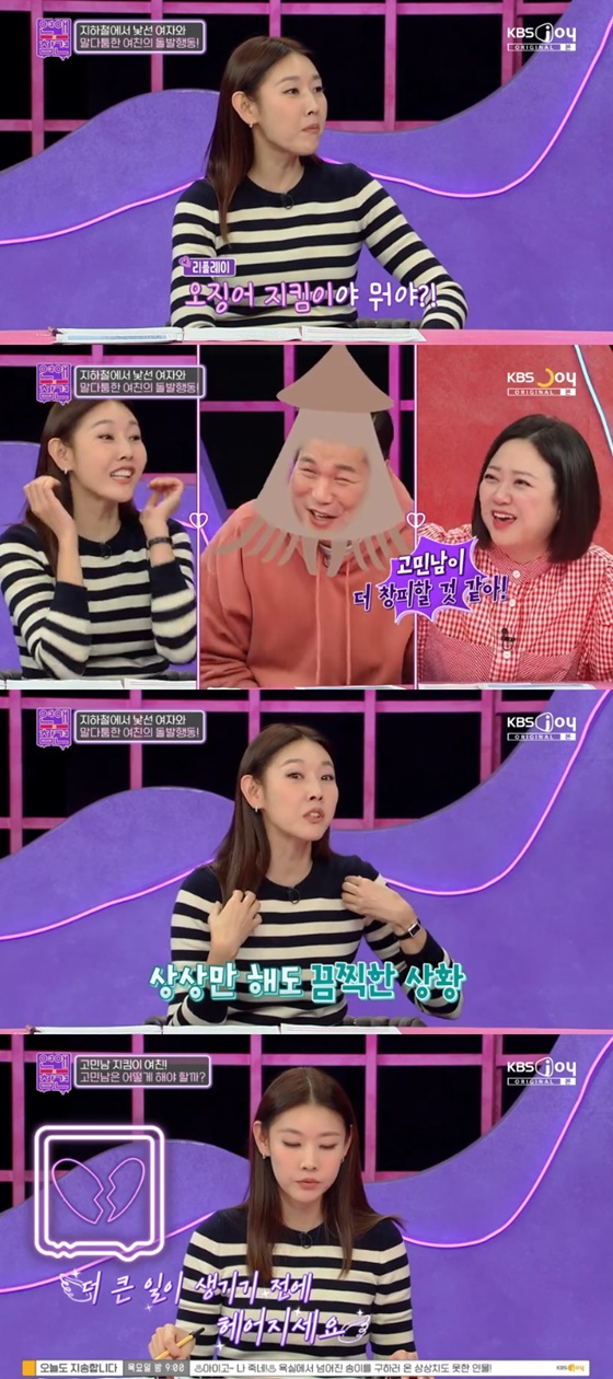 '연애의 참견'(이하 '연참')에서 한혜진이 연애를 하며 '오징어 지킴이'가 된 적이 있다고 털어놨다.