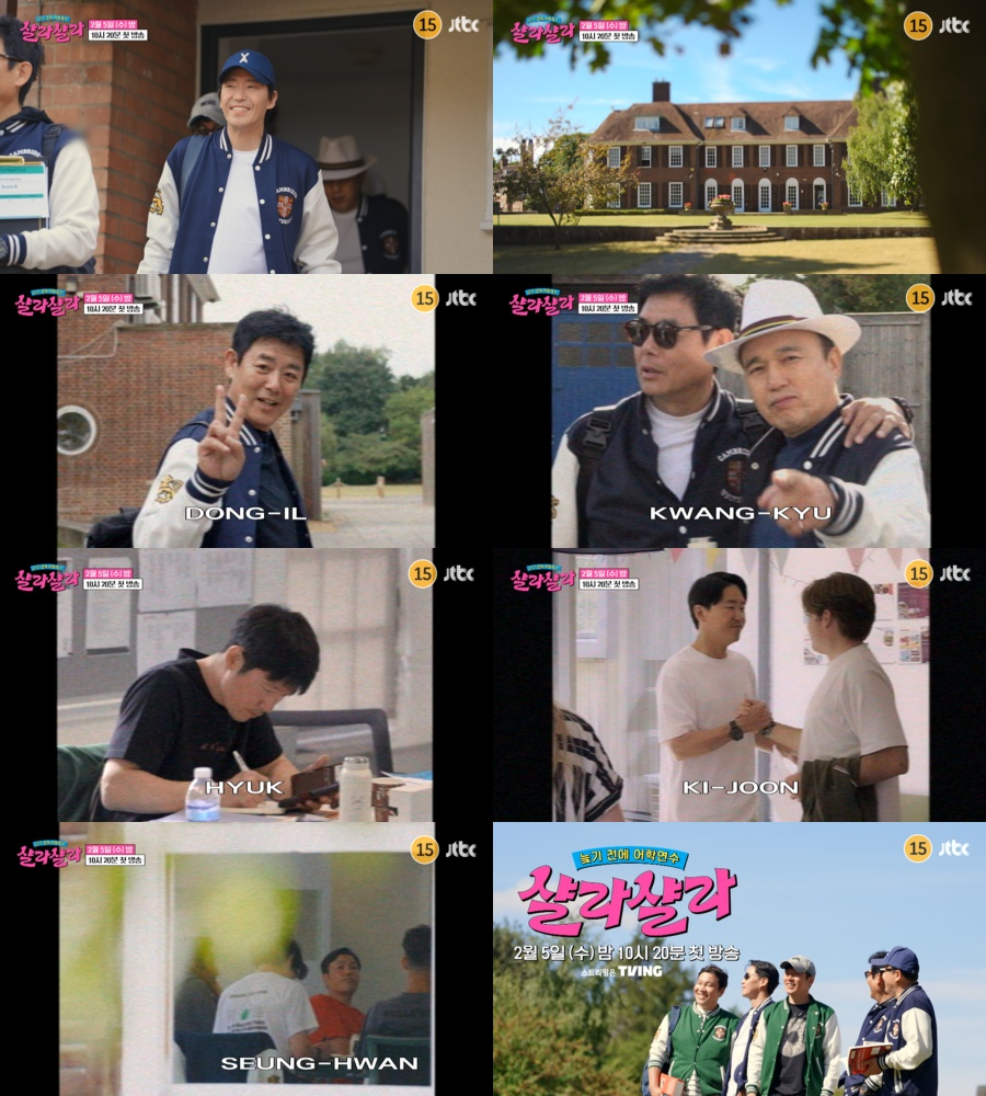 첫 방송을 앞두고 8일(수) 공개된 티저에서는 영국으로 어학연수를 떠난 멤버들의 모습이 담겼다. 뉴진스 'Ditto' 뮤직 비디오를 연상케 하는 연출이 시선을 사로잡는 가운데, 성동일을 필두로 엄기준, 장혁, 김광규, 신승환은 야구 잠바까지 맞춰 입고 늦깎이 학생으로 변신한다. 예능 프로그램에서 쉽게 볼 수 없었던 이들의 케미와, '평균 나이 51.8세' 멤버들이 보여줄 리얼한 영국생활 적응기에 많은 기대가 모인다.