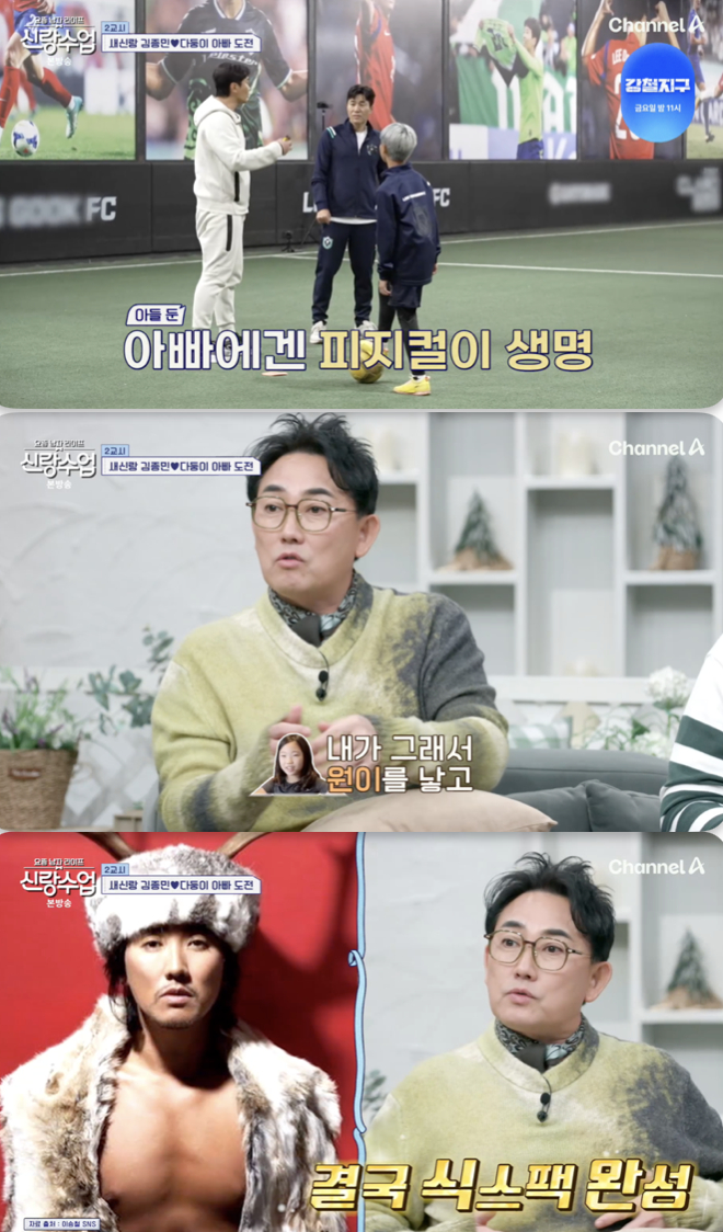 8일 방송된 채널A 예능 프로그램 '요즘 남자 라이프-신랑수업'('신랑수업') 146회에서는 김종민이 동갑내기 절친이자 '오남매' 아빠인 이동국을 찾아가 '2세 계획' 수업을 받는 모습이 펼쳐졌다.