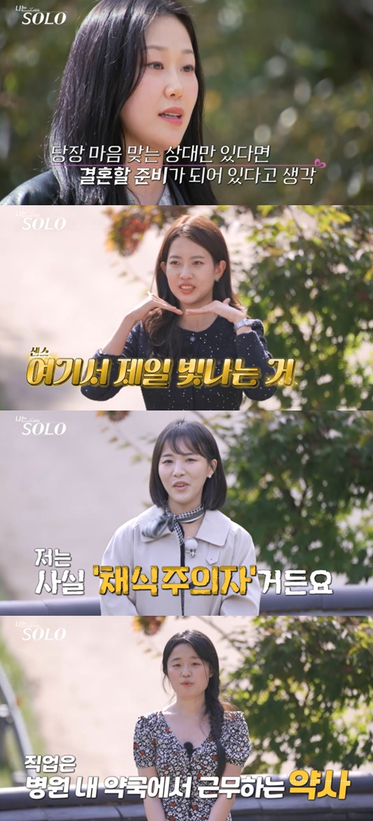 1992년생으로, 서울 중앙부처에서 행정직 공무원으로 근무 중인 순자는 인테리어, 마라톤, 클라이밍 등 다양한 경험을 좋아하는 삶의 방식을 즐긴다고 소개했다. 이어 순자는 '채식주의자'임을 고백했고 "편견 없이, 거부감 없이 (채식주의자를) 받아들여 줄 수 있는 분이면 좋겠다. 그렇다고 해서 절대 채식을 남에게 강요하지는 않는다"라고 덧붙였다. 영자는 1990년생으로, 영유아 강좌를 진행하는 오감놀이 업체 대표라는 반전 직업을 공개했다. 이어 "프리랜서라 남자친구 스케줄에 맞출 수 있다. 한식, 중식 조리사 자격증이 있다. 옛날에 태어났으면 1등 신붓감!"이라고 당당하게 셀프 어필했다.