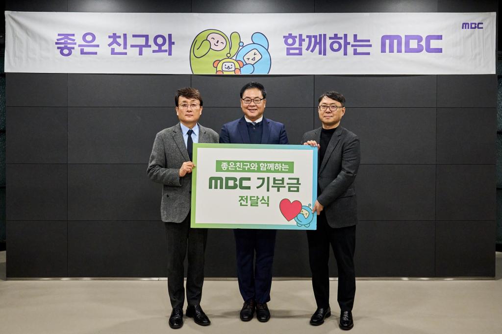 지난 8일 MBC 상암동 사옥에서 열린 기부금 전달식에는 MBC 안형준 대표이사와 전진수 예능본부장을 비롯해 사랑의달팽이 조영운 사무총장 등이 참석했다.