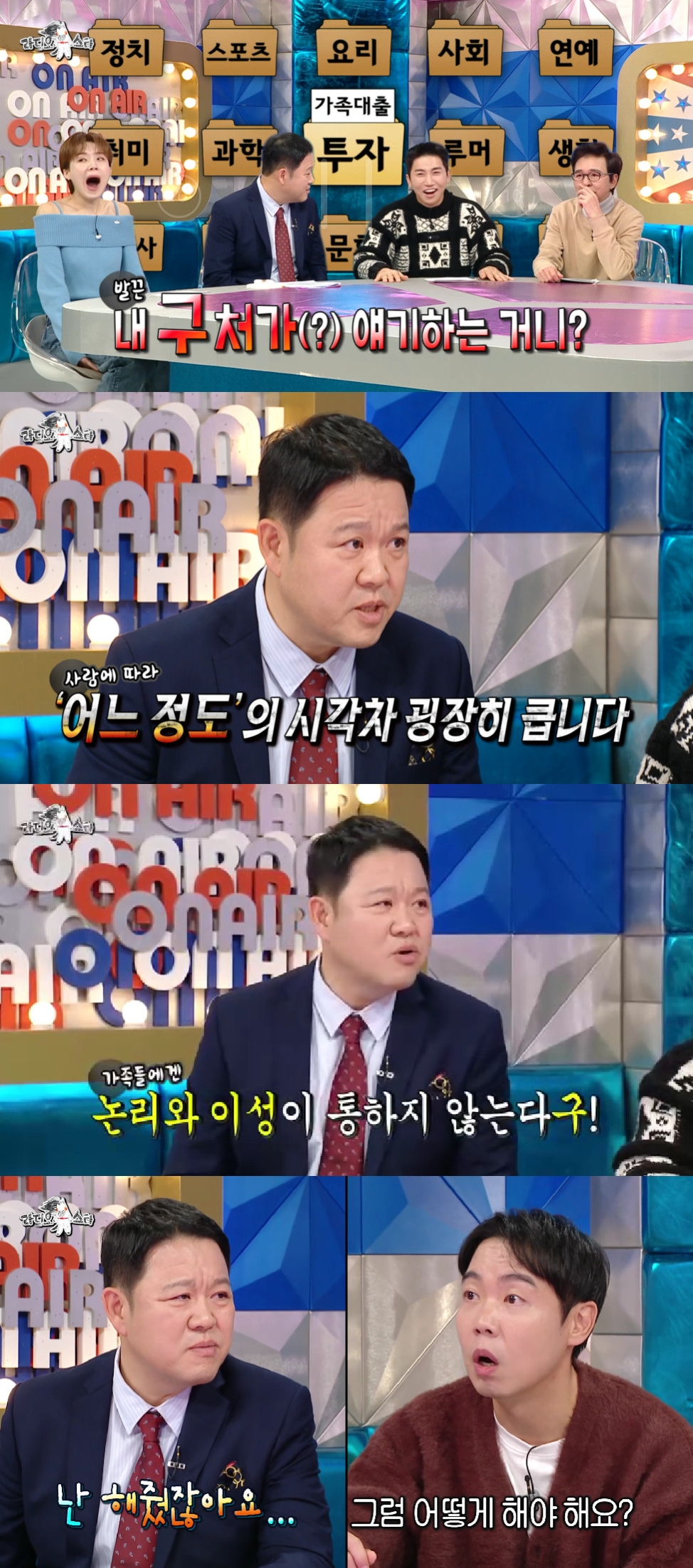 김구라는 "내 구처가 얘기하는 거냐"라며 "'어느 정도'에 대한 시각차가 크다. 나는 어느 정도 줬는데 '이거밖에 안해줘?'라고 한다. 그게 비극의 시작이다. 싫은 소리를 하면 '그럼 돈을 빌려주든가'라고 한다. 가족들은 논리와 이성이 없다. 덜 작동된다. 내가 감내할 수 있는 만큼 해줬고, 맘은 편하다"라고 목소리를 높였다.
