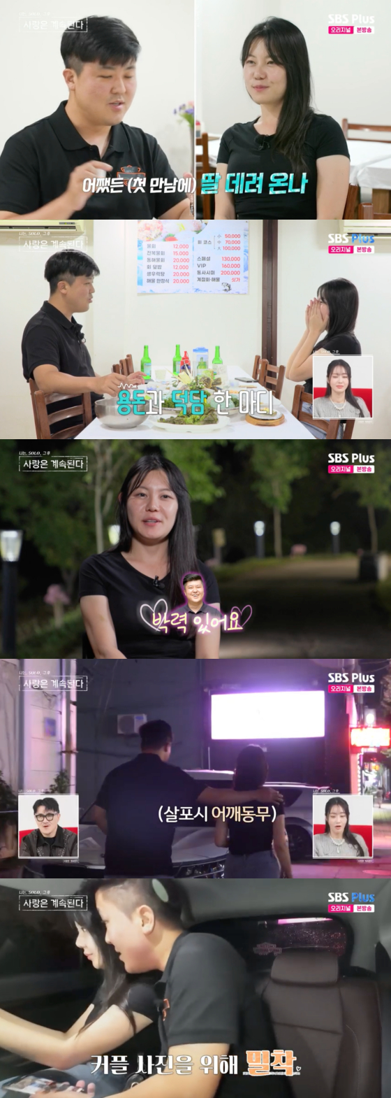 밀착한 채 사진을 찍은 이들은 갑자기 손을 잡았더니 손깍지를 꼈다. 이후 미스터 배가 말을 하며 손 제스처를 하기 위해 잠시 손을 놓자 16기 영자는 "왜 손을 놓냐"고 타박해 웃음을 안겼다.