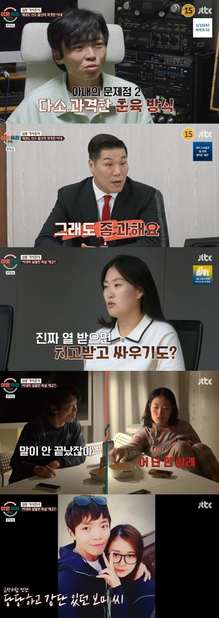 7세인 첫째 아들은 "'아빠가 엄마를 돌려차기로 때려버린다'고 했어"라며 아빠가 엄마를 괴롭힌다고 인지하고 있었다. 조보미 씨는 "내 사전에 이혼은 없다. 바람을 피워도 참을 수 있다"라며 의혼 의사는 0%라고 했고, 신홍철 씨는 "지금은 이혼 의사가 50%다. 아이 때문에 어쩔 수 없이. 그런데 아이가 중학교에 가면 이혼 의사가 100%다"라고 말했다.