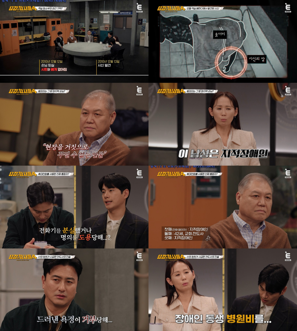 지난 10일 오후 10시 티캐스트 E채널에서 방송된 '용감한 형사들4'에서는 과학수사대(KCSI) 윤외출 전 경무관, 김진수 경감이 출연해 전주 모텔 여인 살인사건의 수사 일지를 밝혔다.