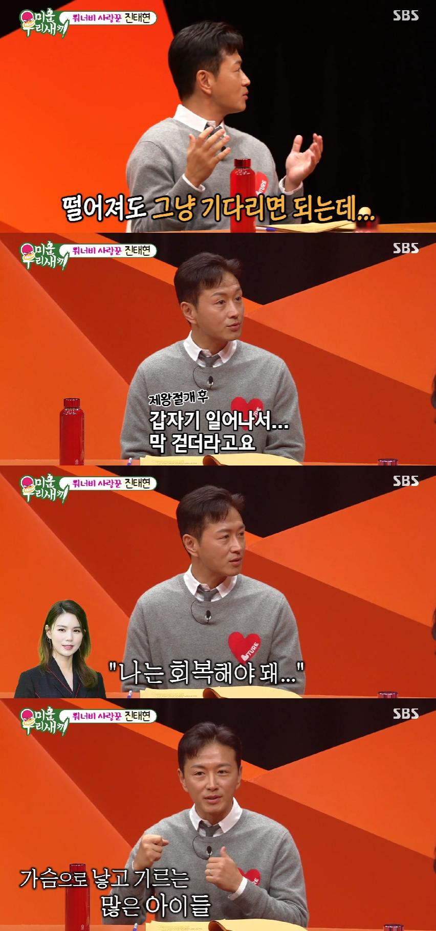 12일 방송된 SBS 예능프로그램 '미운우리새끼'(이하 '미우새')에는 배우 진태현이 게스트로 출연해 다양한 이야기를 나눴다.