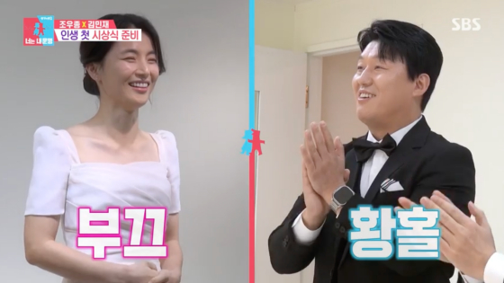김민재는 또 "아내가 드레스 입은 걸 본 적이 없다. 이런 게 낯설다"고 털어놨고, 이내 드레스 차림의 최유라가 등장하자 기립 박수를 치며 환호했다. 차유라 역시 "나 너무 떨린다"고 연신 떨리는 마음을 드러냈다.
