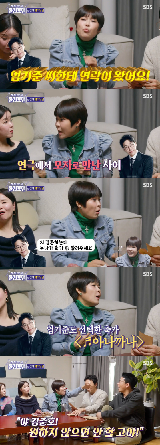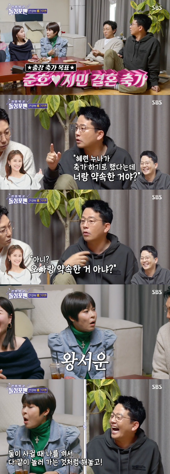 그러자 조혜련은 "너희 사귈 때 내가 다 커버해줬는데 정말 너무한다. 둘이 사귈 때 나를 끼워서 다니지 않았냐. 안 들키려고"라고 서운함을 내비쳤고, 김준호는 어쩔 줄 몰라했다.
