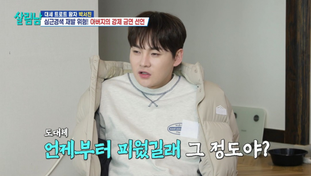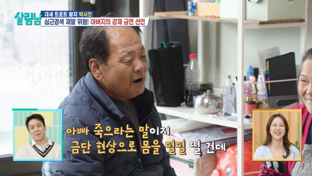 지난 18일 방송된 KBS 2TV 예능 프로그램 '살림하는 남자들 시즌2'(이하 '살림남')에서는 심근경색으로 스텐트 시술을 받은 아버지의 건강을 염려한 박서진이 단호하게 금연을 권하는 모습이 그려졌다.