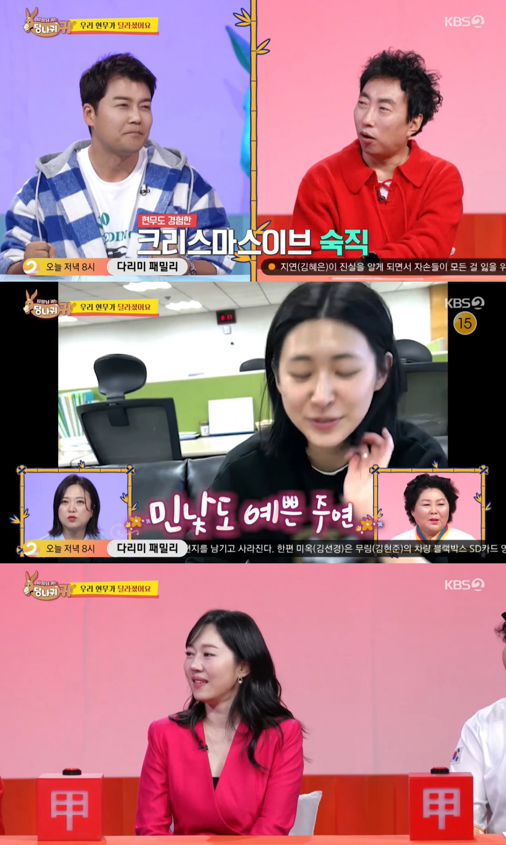 이날 엄지인 아나운서는 "크리스마스이브였다. 집에 있다가 제작진에게 연락받았다. 회사에 현무 선배가 케이크를 맡았다고 했다. 주연 아나운서가 당직 근무한다는 걸 알고 줬다고 했다"라고 말해 놀라움을 자아냈다.