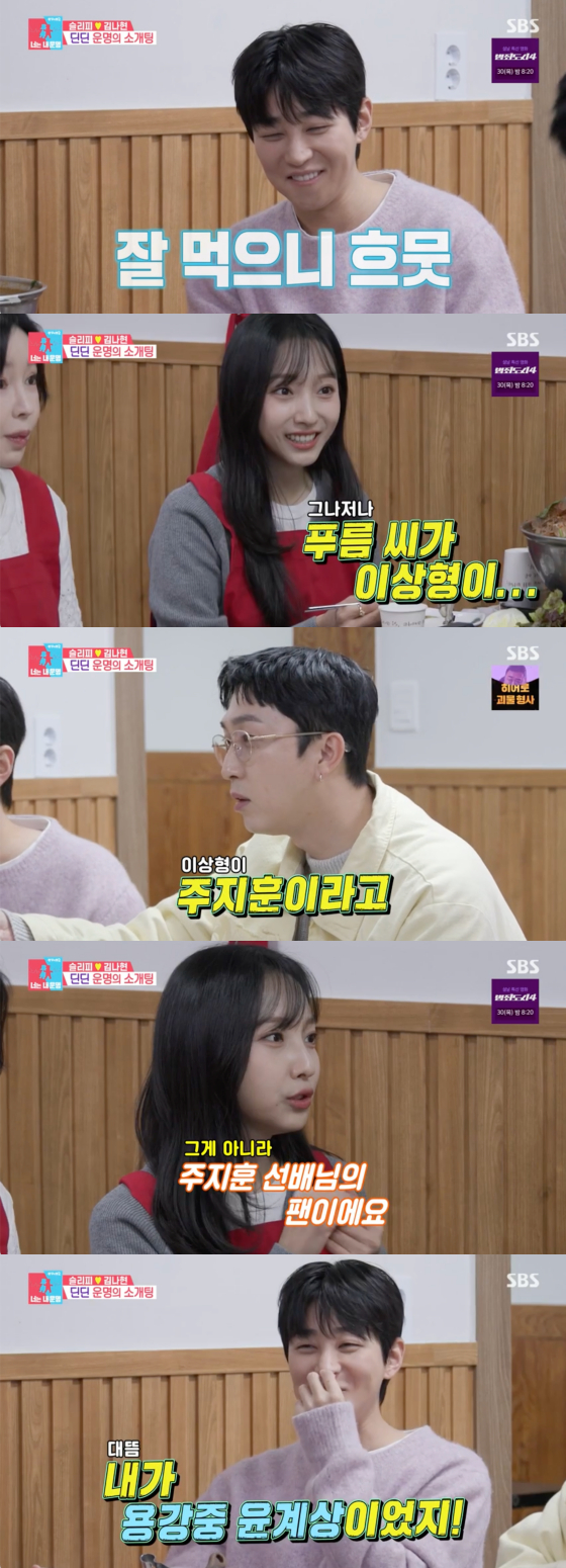 김나현은 소개팅 상대에 대해 "내 대학교 후배다. 13학번이고 93년생이라 올해 서른한 살이다. 이름은 이푸름"이라고 설명했다. 이푸름은 영화 '스트리머', '걸스 인 더 케이지', 드라마 '특수공인중개사 오덕훈', '크라임 퍼즐', '쉿! 그놈을 부탁해' 등에 출연한 배우다.