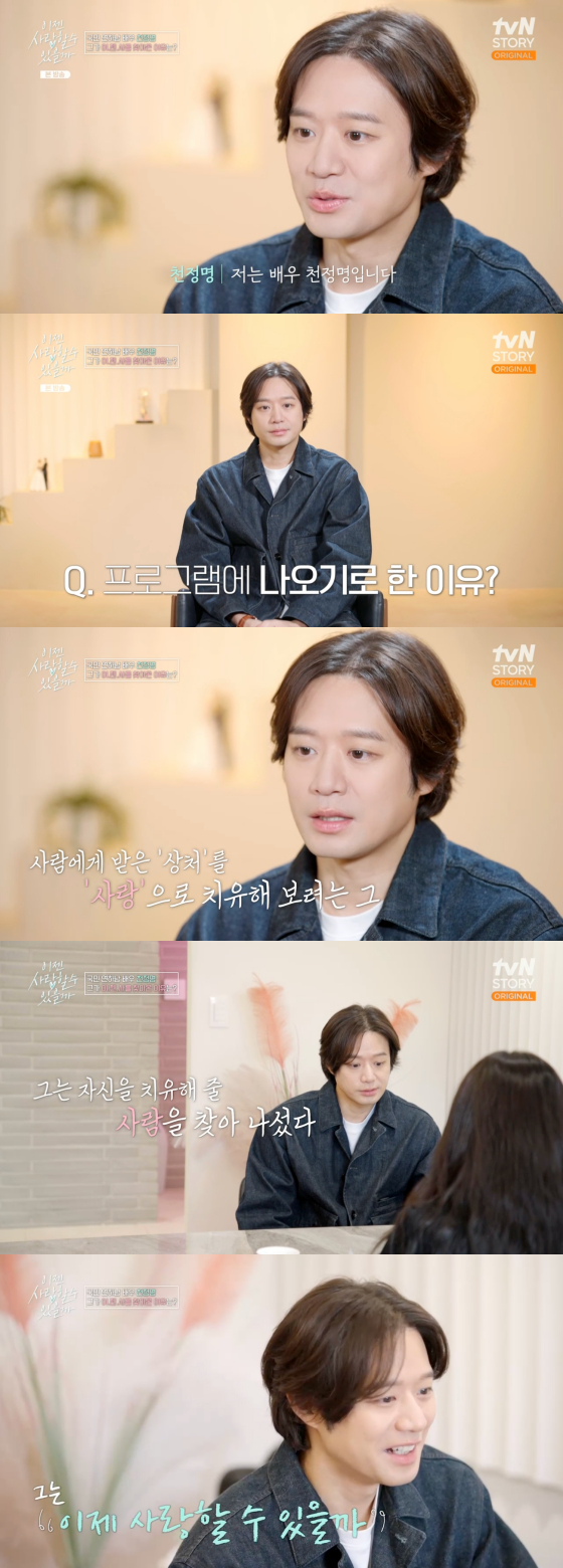 천정명은 출연 이유에 대해 "사람한테 상처를 받았지만 다시 사람을 만나면서 그 과정으로 치유가 될 수 있을 거라고 생각했다"고 말했다.