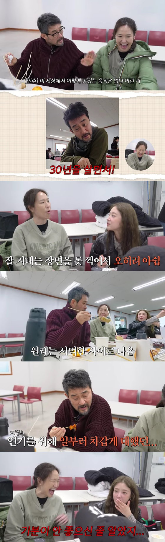 그는 직접 요리한 도시락과 커피차를 선물하며 내조에 힘썼다. 이후 최민수를 만나 드라마 촬영 현장을 둘러봤다. 그곳에서 작품 속 최민수 딸로 출연 중인 이세영을 만났다.