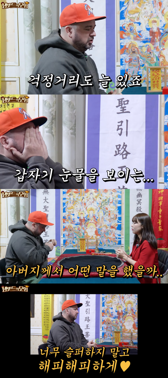 샘 해밍턴의 말을 들은 무속인이 "눈을 감고 아버지를 떠올려 보라"고 하자 샘 해밍턴은 이내 오열해 보는 이들의 마음을 먹먹하게 했다.